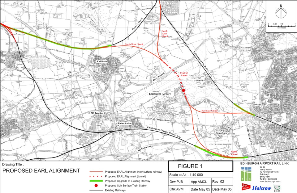 Following the report’s publication, the Scottish Government, in association with BAA, announced its commitment to further development of the proposals for a link to Edinburgh Airport. The Scottish Government appointed tie ltd, which was owned by the City of Edinburgh Council, to develop the proposals for the Edinburgh Airport Rail Link (EARL). The Runway Tunnel option was adopted for development. The non-technical summary of the Environmental Statement contains a helpful explanation of the proposals.